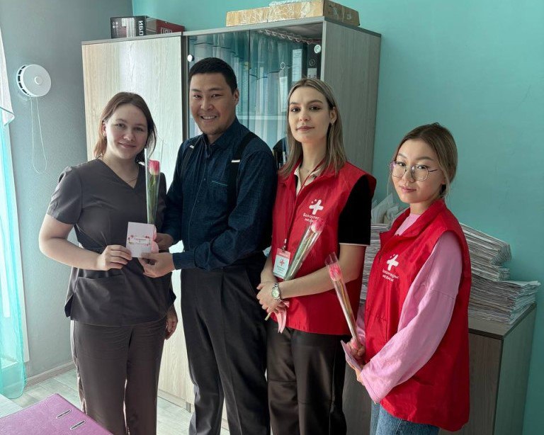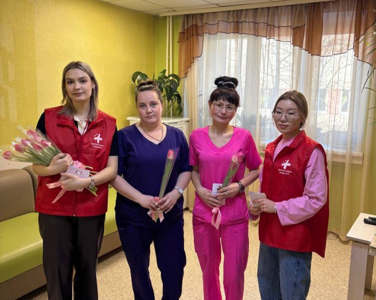 "Our activists had tulips in their hands - a symbol of spring and warmth, and in their hearts - boundless gratitude. Each card presented today was filled with simple but most sincere words: "Thank you for your work", "Be happy", "Your hands work wonders". Doctors, nurses, orderlies - all of them give health to others around the clock, sometimes forgetting about themselves. We wanted them to forget about hard shifts for a minute and just feel like women who are given flowers," the guys said.
